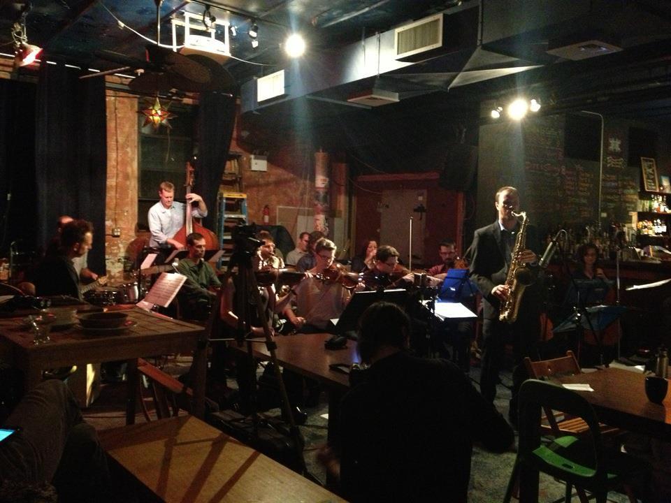 Garry DialThe track sounds amazing... a first rate ensemble, with all the players contributing strong performances. The multifaceted scoring is quite impressive, especially the intriguing textures achieve[d] between the string[s] and traditional jazz instruments. String voicings and articulations in the lyrical interlude are wonderfully evocative...solo sounds excellent as well.